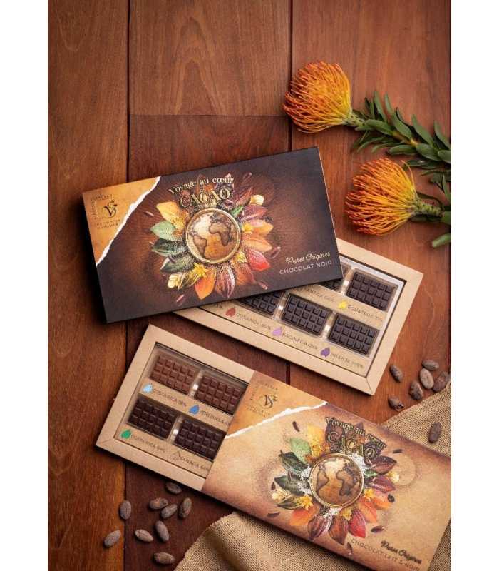 - Coffret de 8 origines ( 4 origines laits et 4 origines noires)